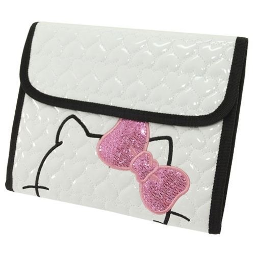 大人気《HELLO KITTY》の可愛いママグッズシリーズ☆こちらはママのお便利グッズ【マルチケース】ジャバラ式なので中身が見やすく使うのも便利♪高級感のある艶有りポリウレタン樹脂加工のポリエステル素材☆ハートキルティング生地とキティちゃんのスパンコールリボンがとっても可愛い☆■サイズ:約230×180×15mm