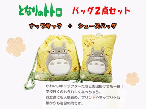 となりのトトロ【にこにこトトロ】バッグ2点セット【シューズバッグ/サイズH29×W22×D7】+【ナップサック/サイズH35×W35】(入園・入学キャラクター雑貨シリーズ!)