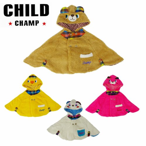 とってもカワイイ♪チャイルドチャンプのアニマルもこもこマントです。お出かけにもバッチリ♪リュック、マフラーもお揃いです。ご出産祝いにも喜ばれそう。