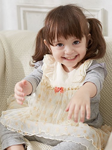 - ●【重ねたチュールが華やか、やわらかい肌触りもポイント】ふんわりチュールにはキラキラとしたラメの星やフラワーも散らしてさらにキュートに。ふんわり重なるチュールは、やわらかな肌触りもポイントです。スタイはスナップボタンで2段階に調整できます