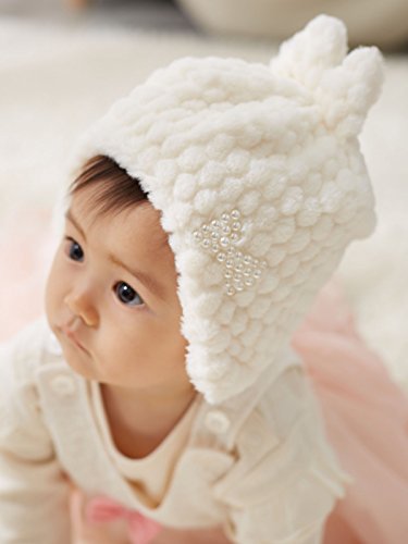 - ●【人気の耳付きアイテムは、極上のなめらかタッチもポイントです】ぴょこんと飛び出た小さな耳が最高にキュート! いつまでも触っていたくなるなめらかタッチのボア素材が、赤ちゃんの頭をやさしく包み込んでくれます。サイドにあしらったパール付きのリボンで横顔もしっかりキュートに。