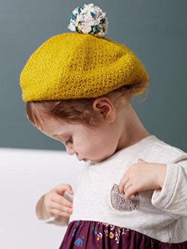 Kid's zoo (キッズズー) ベビー ポンポン付き ベレー帽 赤ちゃん 女の子 ベビー服 ぼうし 46 イエロ―