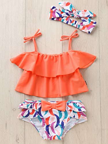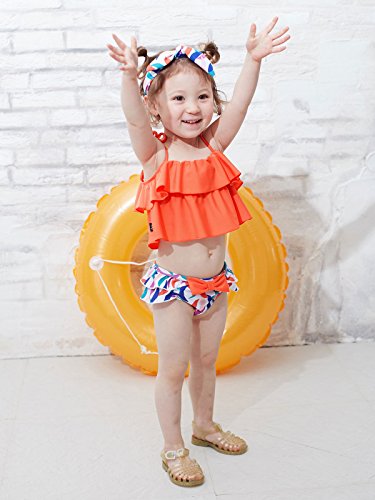 Caldia (カルディア) ベビー ヘアバンド 付き セパレーツ 水着 赤ちゃん 女の子 水遊び ベビー水着 80㎝ オレンジ 50428215