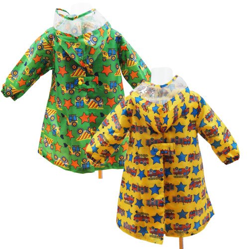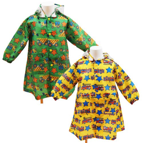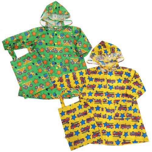 KidsForet キッズフォーレ 働く車柄 レインコート&収納バッグ ランドセル対応 フード周りは透明ビニールで回りも良く見えます☆両脇ポケット有り 収納バッグ付き 袖口は雨が入らないようゴムが入っています。※おそろいの傘もございます。サイズ Sサイズ:85-95cm Mサイズ:105-115cm Lサイズ:115-125cm カラー:イエロー(消防車) グリーン(働く車) 素材:ポリエステル100%(撥水加工)別布ポリエチレン ※撥水(水をはじきやすい) 生産国:中国
