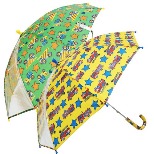 KidsForet キッズフォーレ 働く車柄 窓付き 雨傘 商品説明 傘使用中も中から見える透明部分があり前が見えて安全です。安心手動式 ※ギフト包装対象外商品です。サイズ S=親骨45cm M=親骨50cm カラー グリーン(働く車) イエロー(消防車) 素材 ポリエステル ポリ塩化ビニール 仕入国 日本 生産国 中国