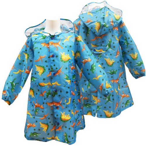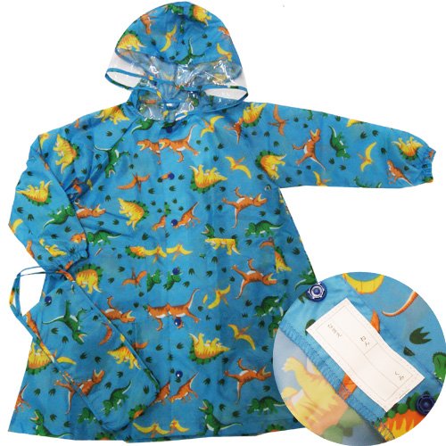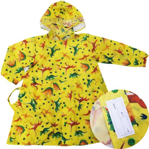 Marble Line マーブルライン ランドセル対応 マチ付 レインコート&収納バッグ 恐竜柄-イエローLサイズ/身長約115-125cm