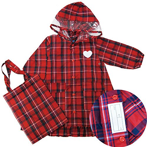 KidsForet レインコート&収納バッグ 子供用ベビー レインコート カッパ 雨具-チェックレッド