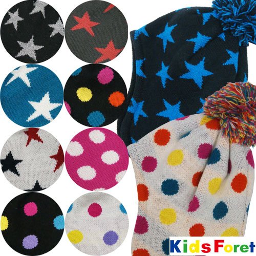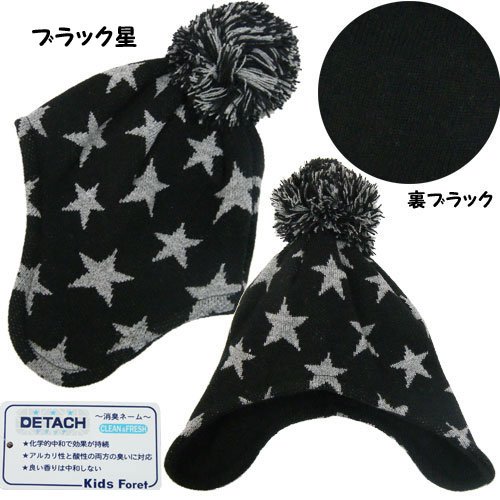 KidsForet キッズフォーレ 子供用帽子 ベビー帽 耳付 ニット帽 DETACH 消臭ネーム-ブラック星48~50cm