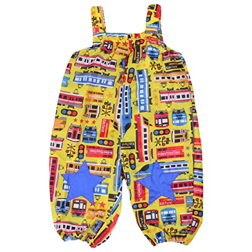 Kids Foret(キッズフォーレ) ポップな総柄お砂場遊び着 サロペットタイプ B81811 (80cm, イエロー(電車柄))