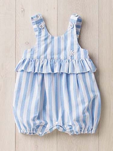 - ●【ボリューミーシルエットがかわいいふんわりカバーオール】鮮やかな先染めストライプ柄が印象的なサロペットオールです。春夏シーズンにぴったりな爽やか配色が元気いっぱい!お花のレースとラインストーンをあしらったモチーフがおしゃれに演出してくれます。