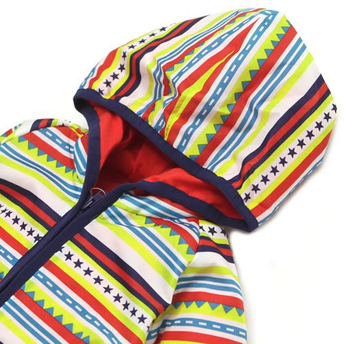 キッドバウ KID BOW フード付ジップアップジャケット(ウィンドブレーカー)クレイジーボーダー ネイビー