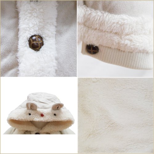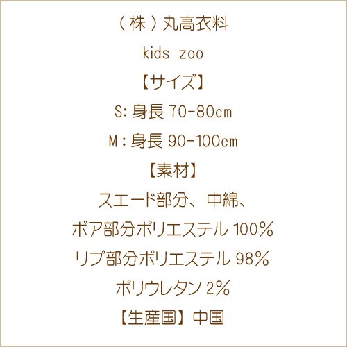 ご出産祝いにも大変人気の商品です! 軽くって暖かいモケット素材 フロント、袖口にボタン付き ※フードは取り外しできません。 サイズ:S/身長70-80cm M/身長90-100cm カラー:ベージュ ブラウン 素材:本体/ポリエステル100% リブ部分/ポリエステル98% ポリウレタン2% 洗濯表示:手洗い(※商品付属の洗濯表示をご覧ください。) 中国製 その他:※お使いの端末の環境などで、実際の色と誤差が生じる事がございますので、予めご了承ください。