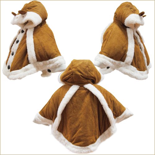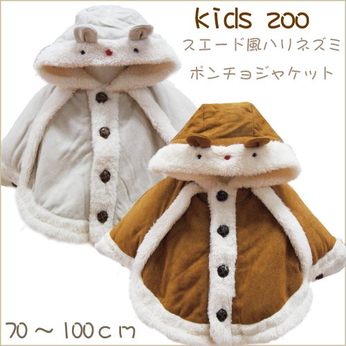 KidsZoo キッズズー ハリネズミ はりねずみ なりきり スエード 風 ベビー ポンチョ ケープ マント ジャケット 上着 - ブラウン/S(70-80cm) フード付きで頭も体もあったか☆