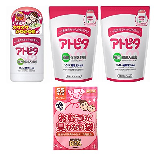 【セット】アトピタ 薬用入浴剤 ボトルタイプ 1個+詰め替え用2個+【おむつが臭わない袋】 BOSベビー用(SSサイズ20枚入)1個
