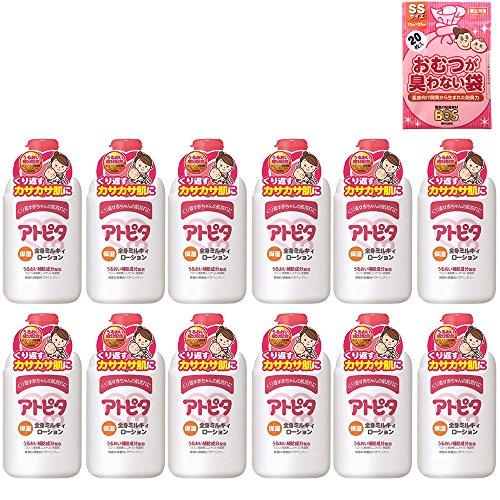 【セット】アトピタ保湿全身ミルキィローション 12個+【おむつが臭わない袋】 BOSベビー用(SSサイズ20枚入)1個