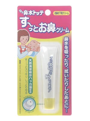 「ママ鼻水トッテ すーっとお鼻クリーム 8g」は、グリチルリチン酸ジカリウム、ハッカ油を配合したベビー用鼻腔クリームです。べたつきが少なく、さらっとした使い心地で、お鼻がすーっとスッキリします。のびがよく、かさついた肌にも負担が少なく塗りのばせます。鼻水を吸ったり、拭いたりしたあとに。そのまま塗れるドームヘッドタイプです。ノンアルコール、パラベンフリー、無着色。アレルギーテスト済み(全ての方にアレルギーが起こらないというわけではありません)。 販売元:丹平製薬内容量:8g