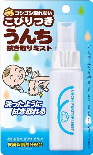 「なめらか拭き取り成分」ミストの水分が素早く馴染み、肌からこびりつきうんちを浮かせる。