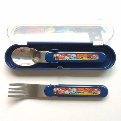 - かわいいカーズのフォーク・スプーン・ケースの3点セットです。