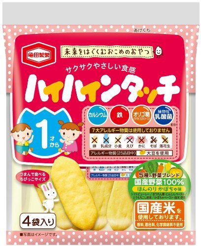 - 原材料:うるち米(国産)、でん粉、植物油脂、かぼちゃペースト、砂糖、乳糖果糖オリゴ糖、かぼちゃ粉末、トマトピューレー、にんじんペースト、ほうれん草ペースト、食塩、とうもろこし粉末、酵母エキスパウダー、植物性乳酸菌(殺菌)、貝カルシウム、植物レシチン(大豆由来)、ピロリン酸鉄