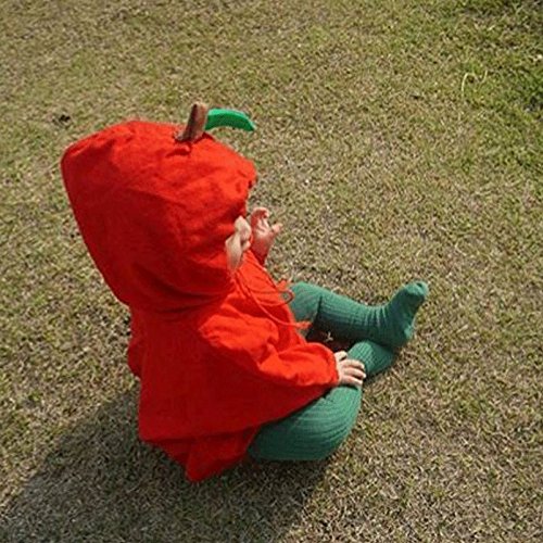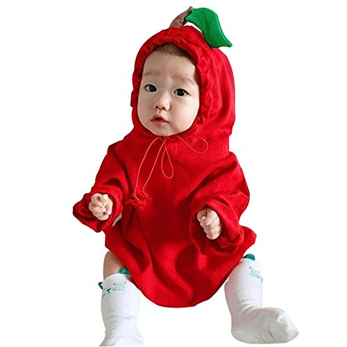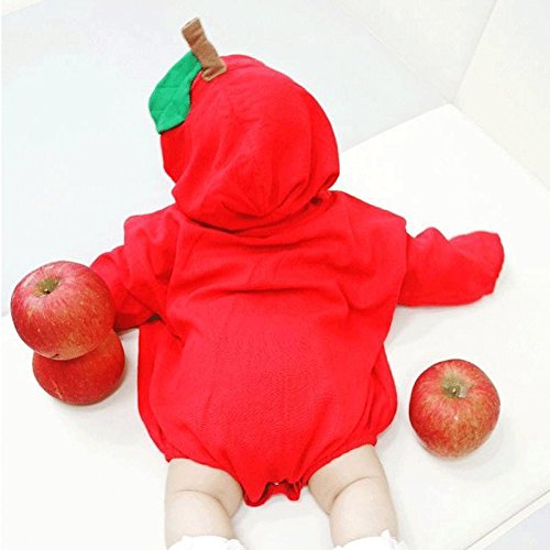二丁目 楽しい春秋のフード付き ベビーリンゴ着ぐるみロンパース 男の子 女の子 (100)