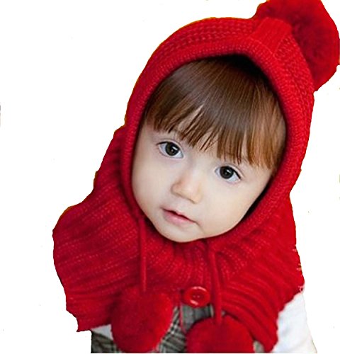 京都おかげさまで 選べるカラー 赤ずきんちゃん風 ニット帽 ポンチョ ベビー & キッズ 用 (レッド)
