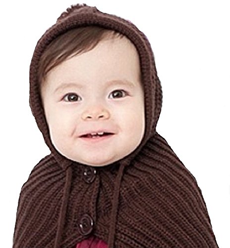 京都おかげさまで 選べるカラー 赤ずきんちゃん風 ニット帽 ポンチョ ベビー & キッズ 用 (ブラウン)