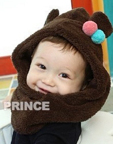 京都 おかげさまで ベビー & キッズ かわいい クマさんのお耳 すっぽり フード & ネックウォーマー 選べる カラー (ブラウン)