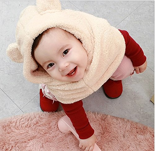 ベビー & キッズ 用のとっても可愛い クマさんのお耳のフード付きネックウォーマーです。