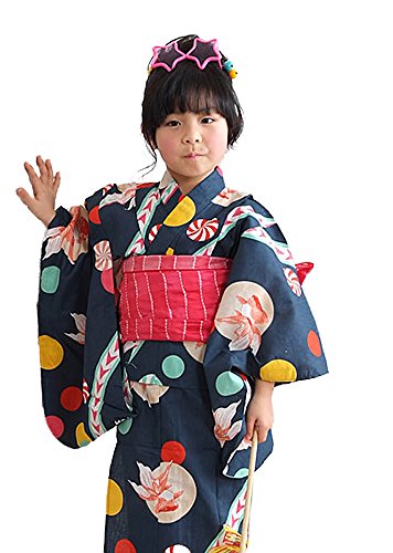 [ 京都きもの町 ] モダンアンテナ 浴衣単品「キッズ100cm」 2.濃紺色金魚