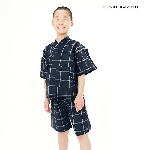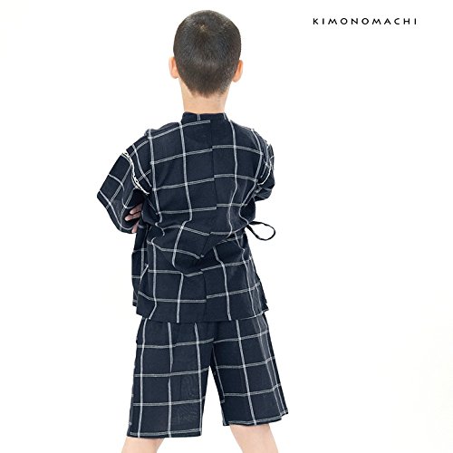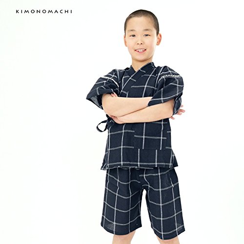 [ 京都きもの町 ] 綿麻 子供 じんべい 全15色 6サイズ 90cm 12紺格子