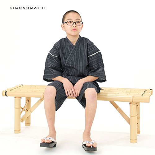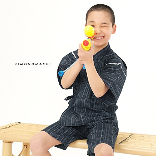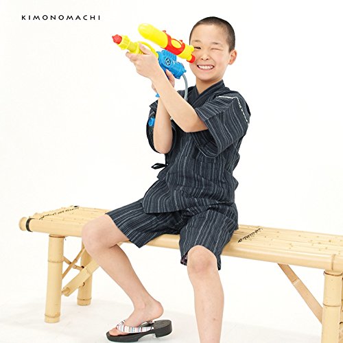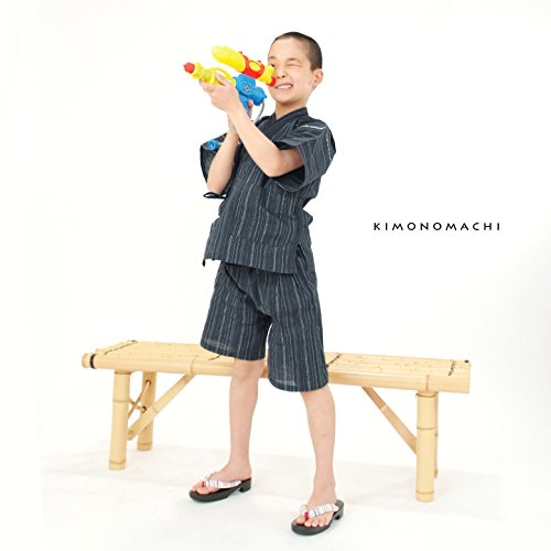 [ 京都きもの町 ] 綿麻 子供 じんべい 全15色 6サイズ 140cm 10紺白縞