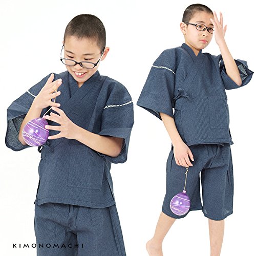 - 綿麻素材の爽やかで着心地の良い男の子用甚平です。ウエスト部分はゴムでできており、ゆったりとした作りとなっています。