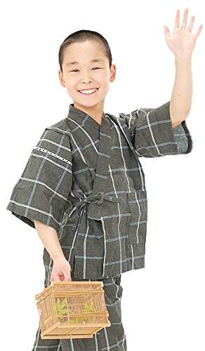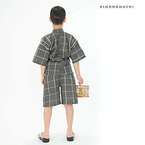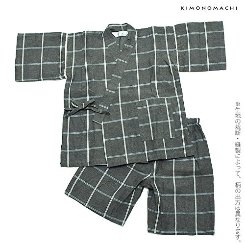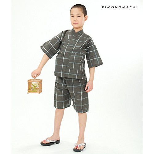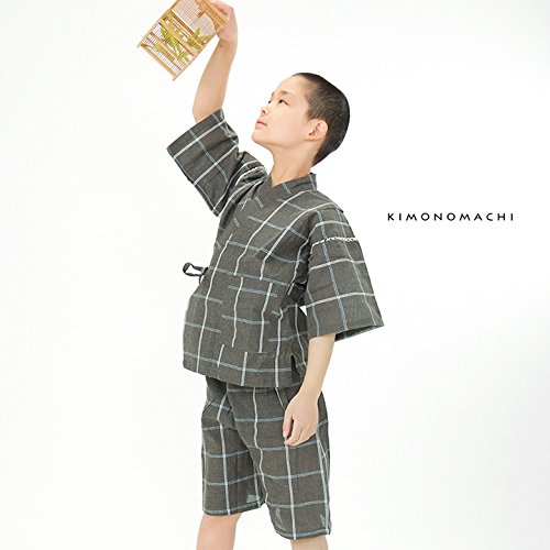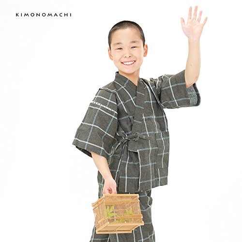[ 京都きもの町 ] 綿麻 子供 じんべい 全15色 6サイズ 130cm 13墨黒格子