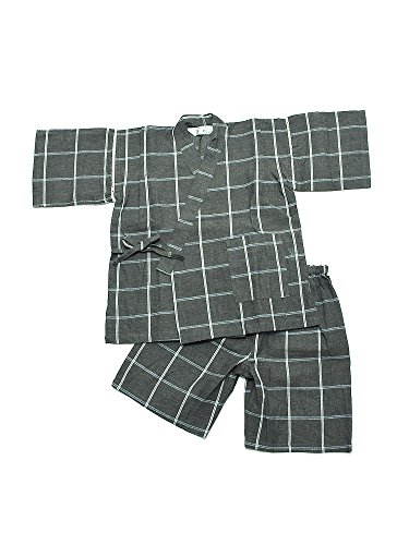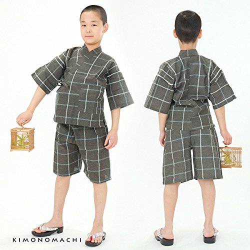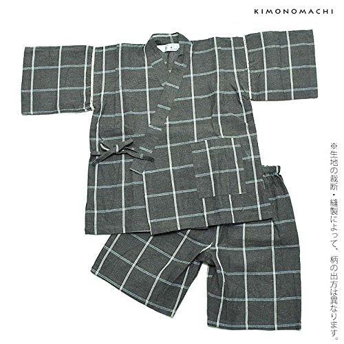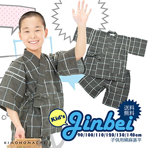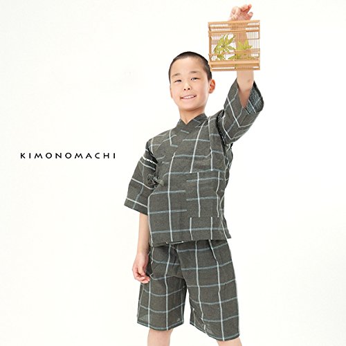[ 京都きもの町 ] 男の子 じんべい 墨黒格子 120cm