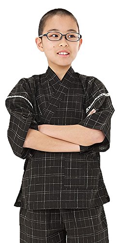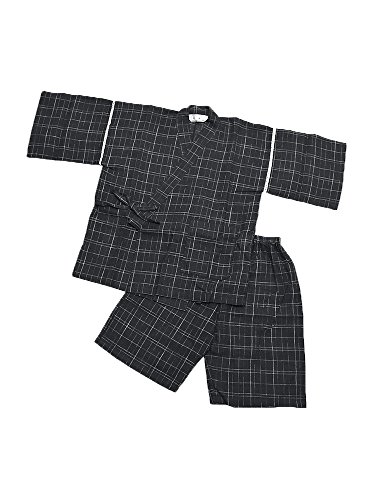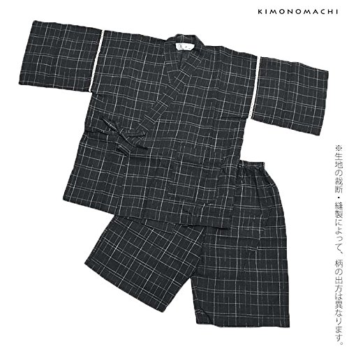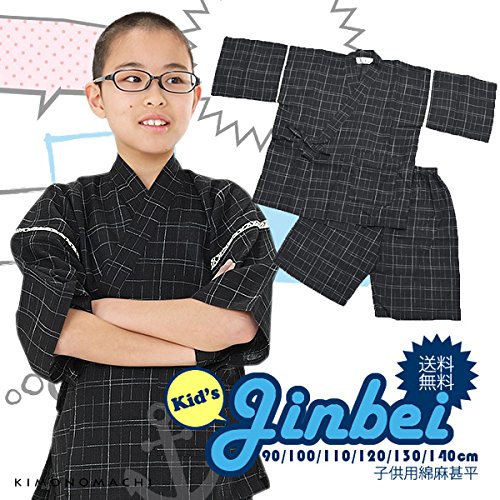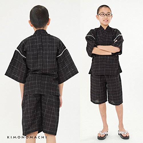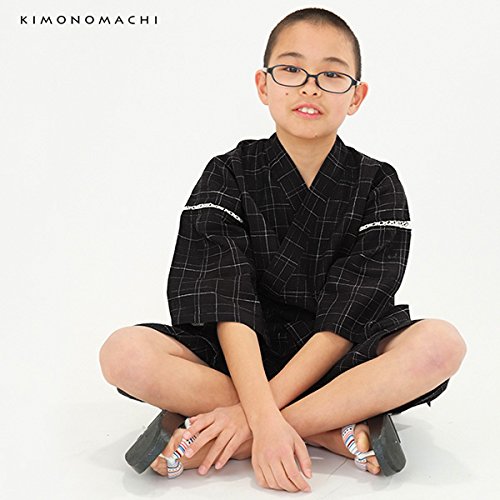 [ 京都きもの町 ] 男の子 じんべい 黒十字絣 120cm