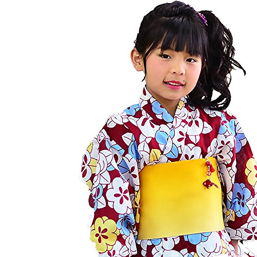 [ KIMONOMACHI ] こども 浴衣セット「エンジ梅と橘」 120cm