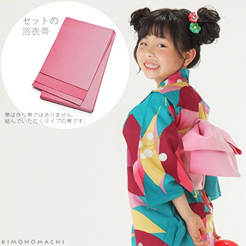 京都きもの町のオリジナルのこども浴衣、浴衣帯の浴衣2点セットです。浴衣帯は大人と同じタイプのものです。お子様なので、大きめのリボン結びができますので、可愛らしさがアップします。大人に負けないオシャレな浴衣セットです。