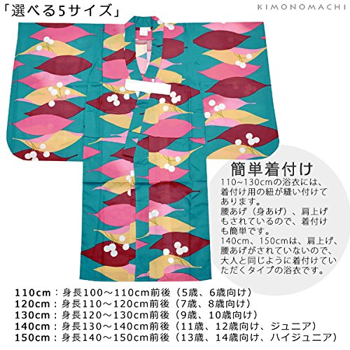 [ KIMONOMACHI ] こども 浴衣セット「青緑色葉っぱと実」 110cm