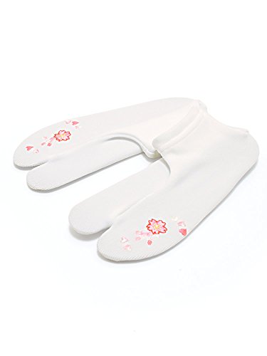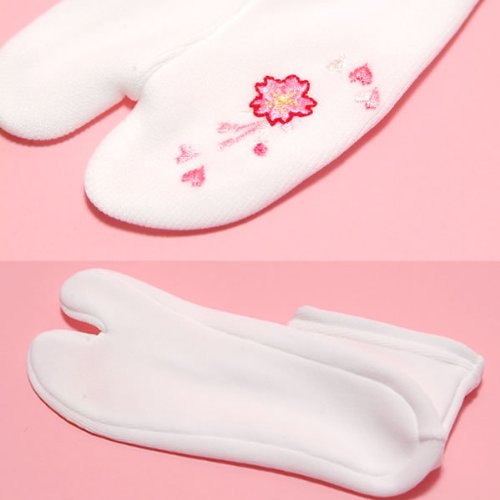 白足袋に、ピンク、白などの色使いの桜、ハートの刺繍。