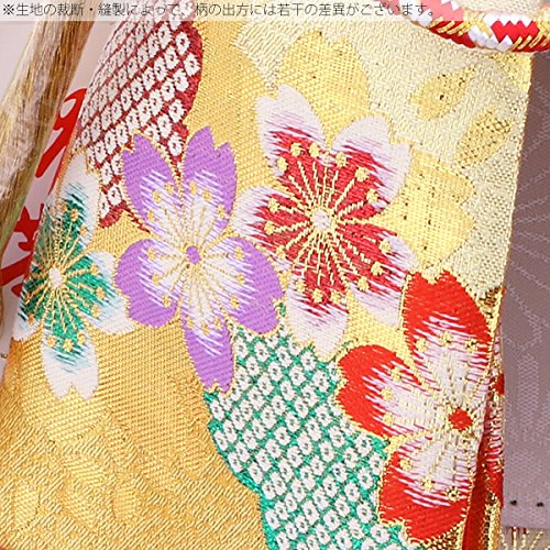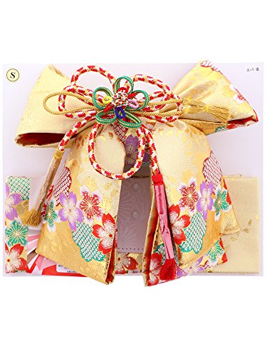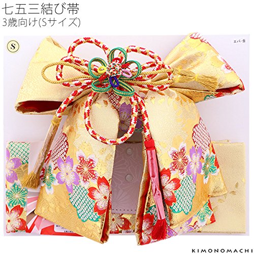 [ 京都きもの町 ] 3歳の女の子向け 結び帯「ゴールド 桜」七五三 二部式帯 付け帯 日本製 (Sサイズ)
