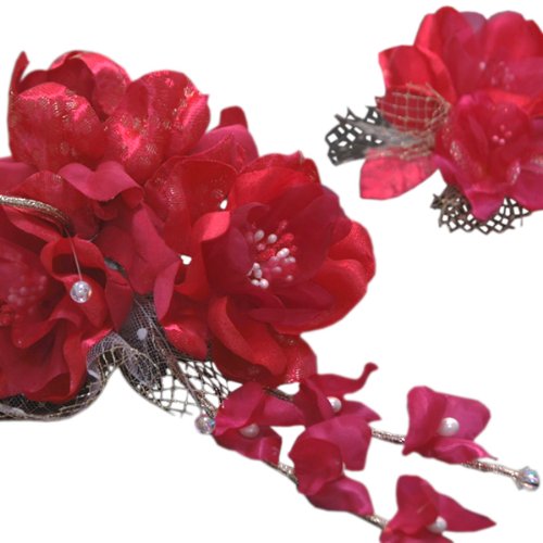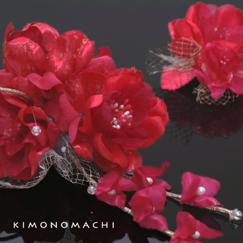 [ 京都きもの町 ] 花 髪飾り 2点セット 赤色 お花のレース 花 髪飾り 花しおり 振袖