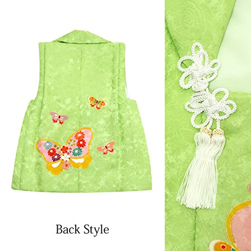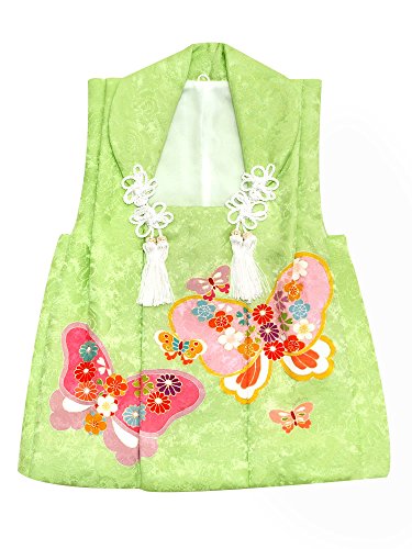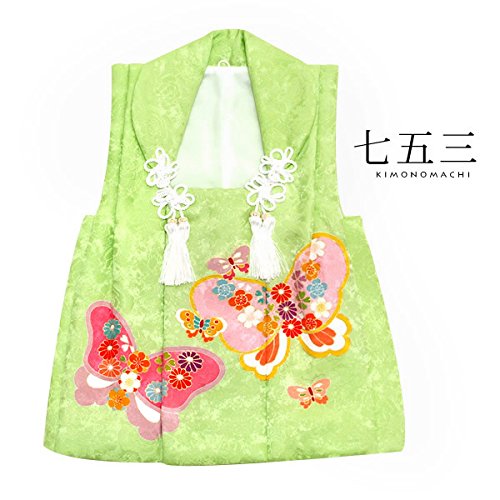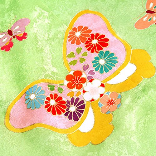 [ 京都きもの町 ] 女児 被布コート単品 萌黄色 蝶と花