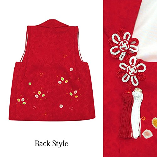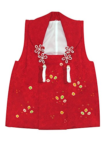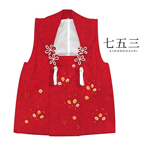 [ 京都きもの町 ] 女児 被布コート単品 赤色 絞りのお花