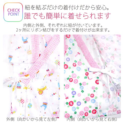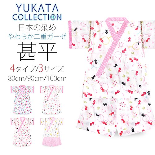 二重ガーゼ 甚平 女児 キッズ&ベビー 4タイプ 3サイズ (100cm, BJ-G4)