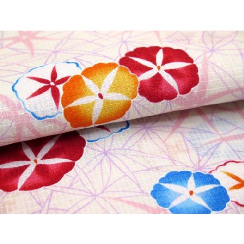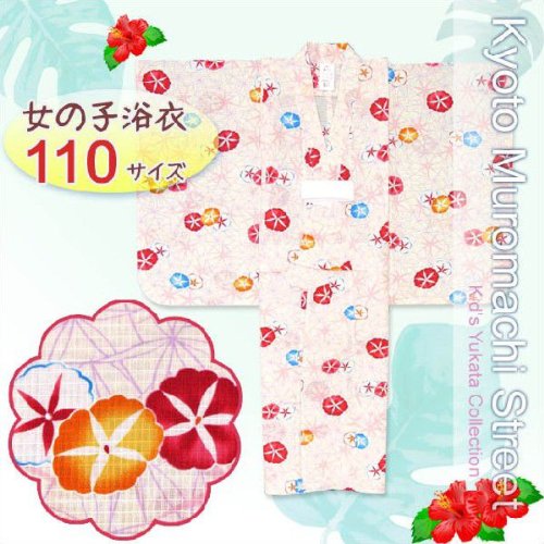 2014年 琉球紅型風の女の子浴衣 子供浴衣110サイズ「生成り、朝顔」BIN-11-GS