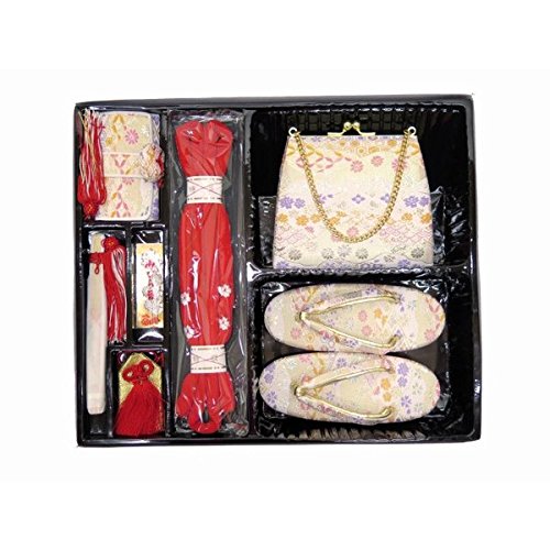 - <はこせこセット> ●箱セコ ●草履 ※サイズ:約18cm ●バック ●丸ぐけの帯締め ●寿扇子 ●懐(お守り) ●懐紙飾り(びら簪)