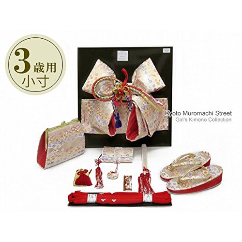 七五三 着物 3歳用 結び帯&箱せこペアセット(小寸) 金襴「白系」DPS301