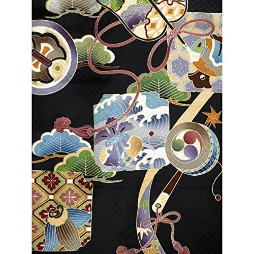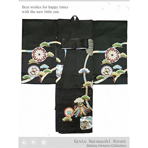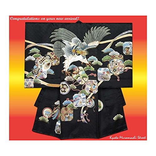 お宮参り着物 正絹の男の子用産着(初着)「黒地、鷹と軍配」IBU715