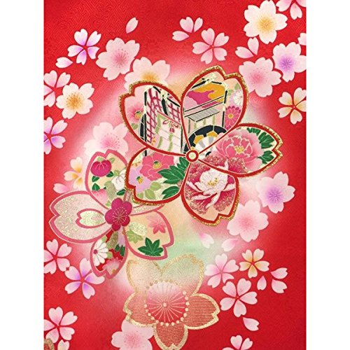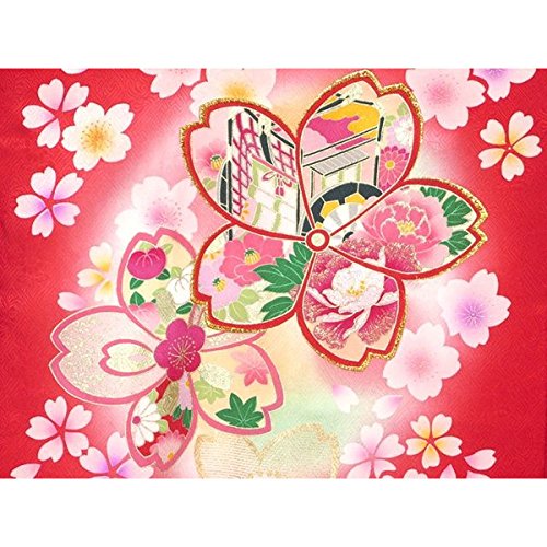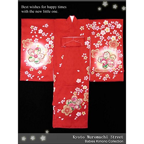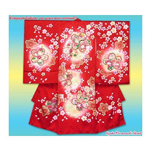 お宮参り着物 正絹の女の子用産着(初着)「赤、桜御所車」IGU705