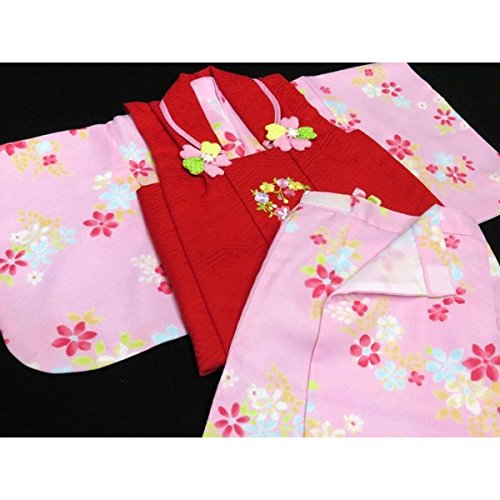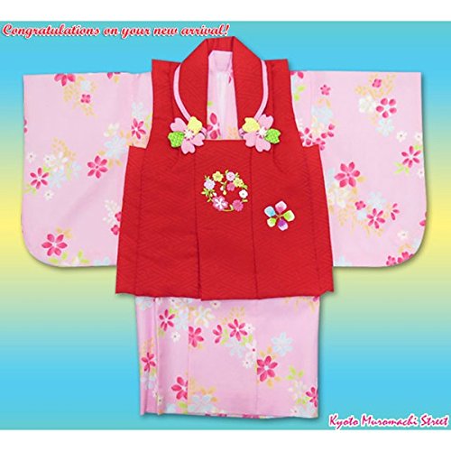 ベビー用の被布と二部式着物セット 女の子「赤&ピンク、小花」HFG029